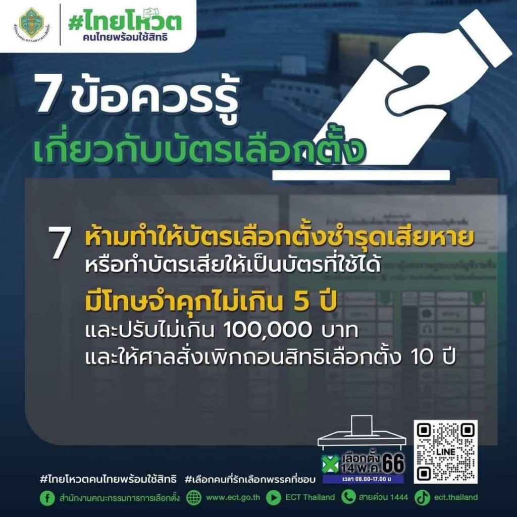 7. ห้ามทำให้บัตรเลือกตั้งชำรุดเสียหาย หรือทำบัตรเสียให้เป็นบัตรที่ใช้ได้