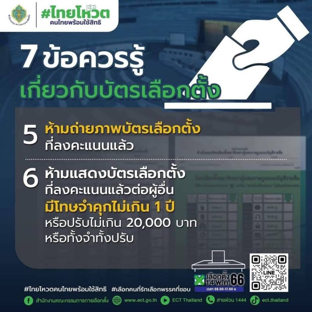 5. ห้ามถ่ายภาพบัตรเลือกตั้งที่ลงคะแนนแล้ว