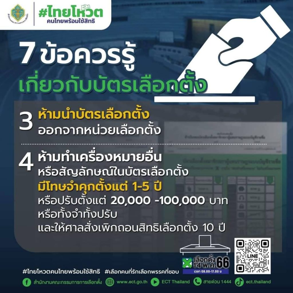 3. ห้ามนำบัตรเลือกตั้งออกจากหน่วยเลือกตั้ง