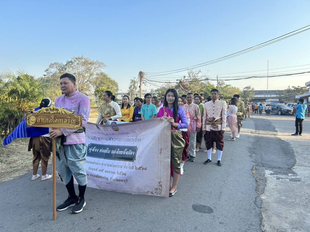 “ชาวลพบุรี พร้อมใจ แต่งไทยทั้งเมือง” วันพุธ ที่ ๑๕ มกราคม พ.ศ.๒๕๖๘ เวลา ๐๗.๓๐ น. นายกิตติภพ คงภานิติธรรม นายอำเภอโคกเจริญ ประธาน พ.ต.อ.พิภพ นาพุทรา ผกก.สภ.โคกเจริญ นำข้าราชการตำรวจ สภ.โคกเจริญ ร่วมพิธีเปิดงานเดินรณรงค์แต่งไทยทั้งเมือง เนื่องในงานแผ่นดินสมเด็จพระนารายณ์มหาราช ประจำปี ๒๕๖๘ พร้อมด้วยหัวหน้าส่วนราชการ/หัวหน้าหน่วยงานรัฐวิสาหกิจ/ผู้อำนวยการโรงพยาบาลโคกเจริญ/ผู้บริหารสถานศึกษา/ นายกองค์การบริหารส่วนตำบล/กำนัน สารวัตรกำนัน และแพทย์ประจำตำบล/ผู้ใหญ่บ้าน และผู้ช่วยผู้ใหญ่บ้าน เขตอำเภอโคกเจริญ ณ บริเวณหน้าที่ว่าการอำเภอโคกเจริญ