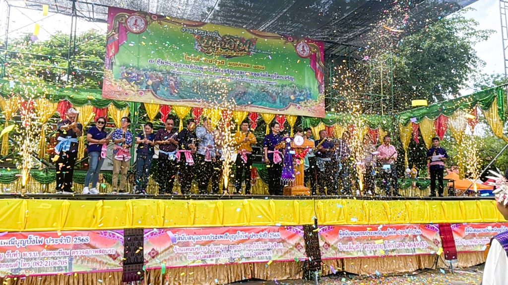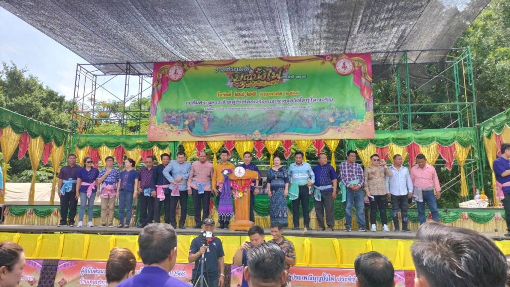 วันเสาร์ ที่ 24 พ.ค.2568 พันตำรวจเอก พิภพ นาพุทรา ผู้กำกับการสถานีตำรวจภูธรโคกเจริญ ร่วมพิธีเปิดงานประเพณีบุญบั้งไฟอำเภอโคกเจริญ โดย นางศศิประภา ยนปลัดยศ นายกองค์การบริหารส่วนตำบลโคกเจริญ พร้อมคณะผู้บริหาร สมาชิกสภาองค์การบริหารส่วนตำบลโคกเจริญ หัวหน้าส่วนราชการ พนักงาน ลูกจ้างองค์การบริหารส่วนตำบลโคกเจริญ ประชาชนตำบลโคกเจริญ ร่วมกิจกรรมอย่างพร้อมเพียง โดยมี นายกิตติภพ คงภานิติธรรม นายอำเภอโคกเจริญ เป็นประธานในพิธี #งานบุญบั้งไฟเป็นงานประเพณีที่มีความสำคัญต่อวิถีชีวิตและวัฒนธรรมของชาวอีสาน ที่ปฏิบัติสืบทอดกันมาตั้งแต่สมัยโบราณ เพื่อบูชาพญาแถนหรือเทพวัสสกาลเทพบุตรให้บันดาลฝนตกต้องตามฤดูกาล
